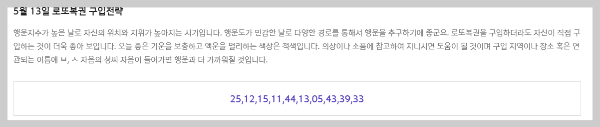 저는 오늘 '로또 사기 좋은 날'이라는 결과를 받았는데요,