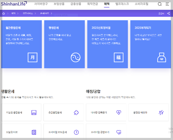 그런 점에서 신한라이프 무료 운세 서비스는 꽤 유용하게 느껴졌어요.